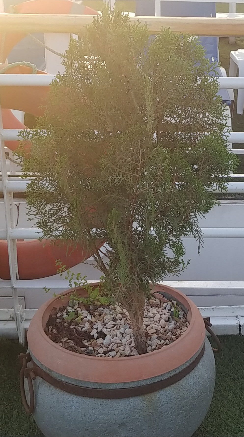 테이블야자와 측백은 선상의 뜨거운 태양아래서..