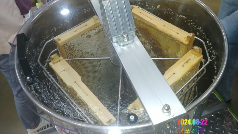 양봉 벌집을 원통형 기구에 넣고 빙빙 돌리면