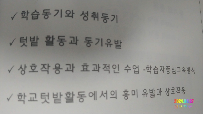 학교텃밭을 주제로 중학생 정도의 학생들을 대상으로 교육하는 법을 배운다.