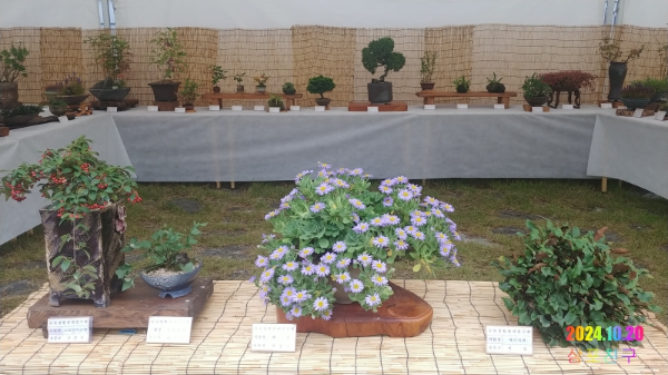 각종 과실수와 화초, 야생화들을 이용한 분재전시회..