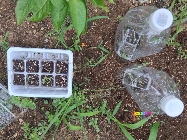 다른 모종은 아직 어린데 백일홍이 너무 웃자란다.