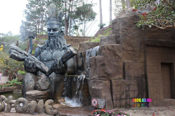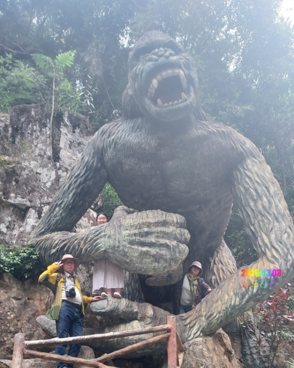 예상보다는 작은 폭포 옆으로 킹콩 조각상..
